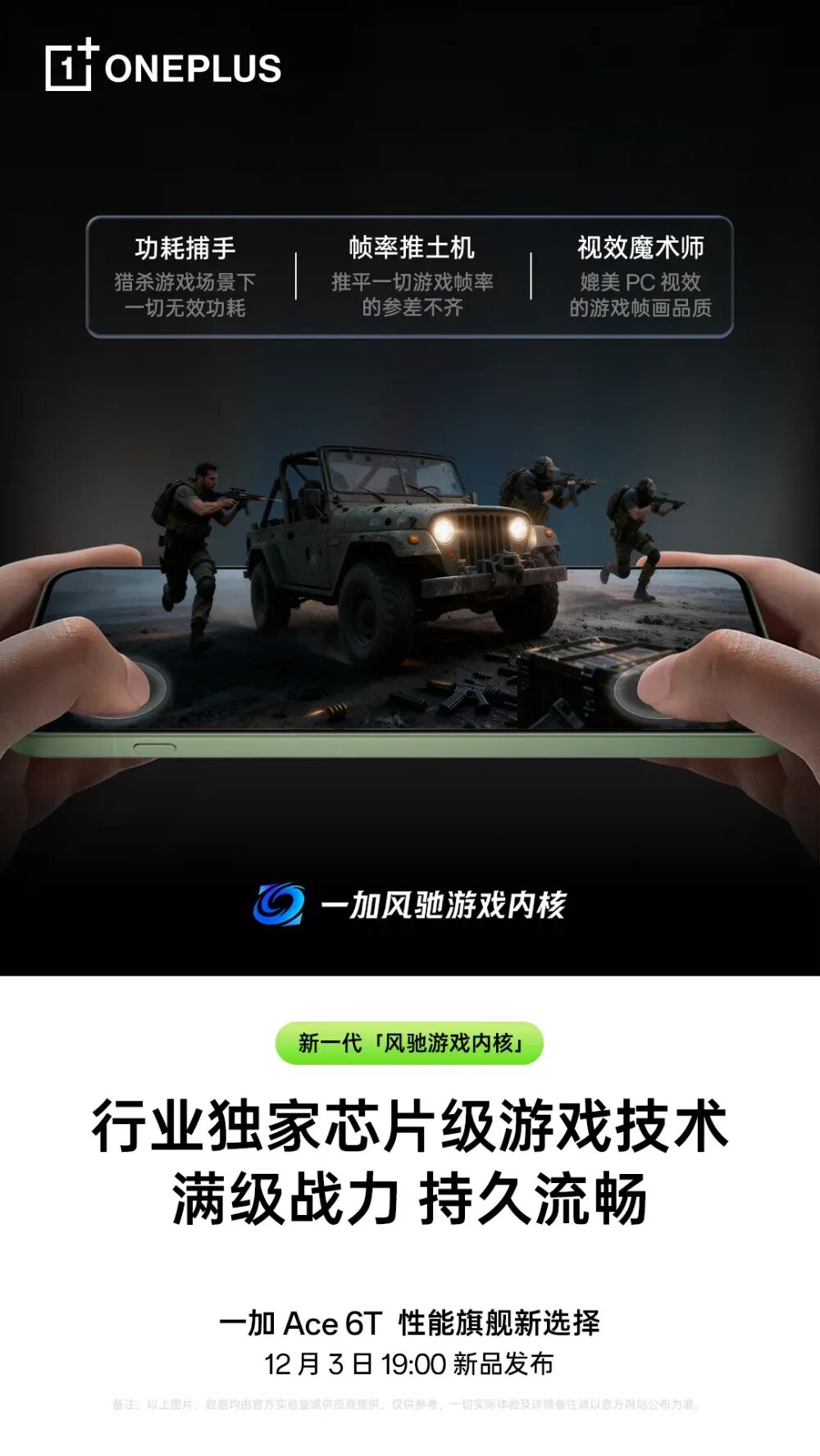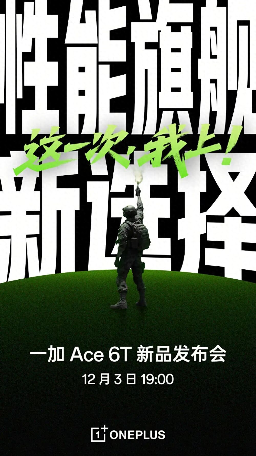 今天,一加手机正式宣布,将于12 月 3 日 19:00带来一加Ace 6T新品发布会,并预热称“「性能旗舰新选择」准备就位,这一次,我上!”