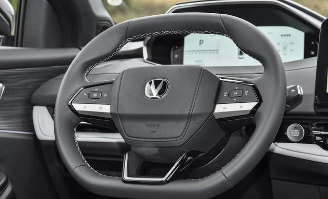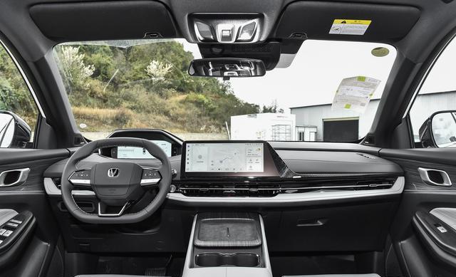 内饰方面也很有特色。车内采用大量软质材料包覆,触感和视觉感受都很棒。椭圆形三辐式方向盘和怀挡式换挡设计很新颖,取消了原副仪表台位置的换挡杆,改为手机储物区,操作更便捷,还让车内看起来更宽敞。10.25英寸液晶仪表盘和12.3英寸车机屏幕可双屏联动,显示清晰,操作流畅。