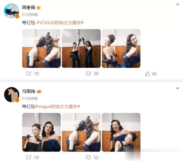 23日的VOGUE时尚盛典还没正式开场,后台就先炸出了个大惊喜——周冬雨和马思纯在等红毯时凑到一起拍了合照,两张笑脸挤在镜头里,瞬间让全网发出“爷青回”的尖叫!