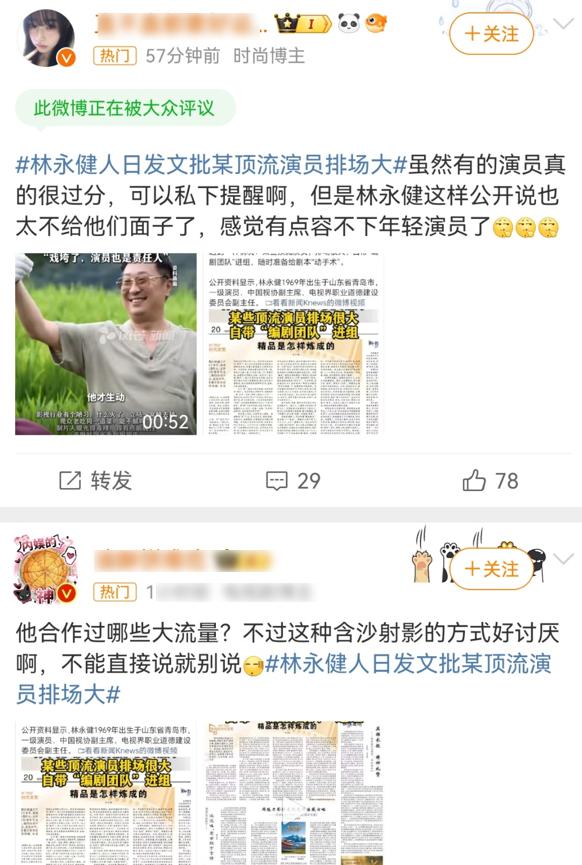 文章一经发酵迅速聚拢网友热议,短短几个小时就引来6.4万条评论,除了点赞老戏骨的耿直与犀利之外,还在猜测他口中的偶顶流到底是谁?