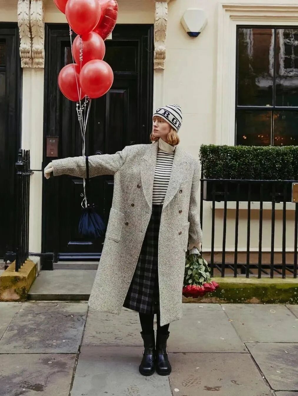百褶裙的律动感、A字裙的优雅弧度、直筒裙的利落线条,都能与大衣形成美妙的对比。不同材质的碰撞,更能为造型增添趣味。