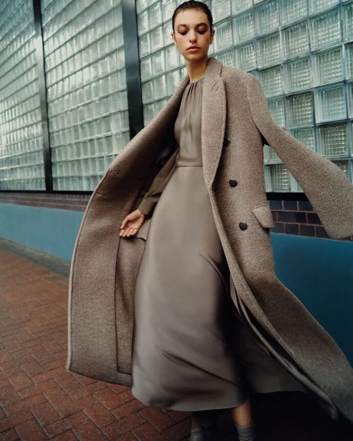 廓形大衣外套,象征着力量与独立;裙子,代表着柔美与温婉。二者的结合,恰如当代女性的双重特质,既有坚强的外壳,又有柔软的内心。