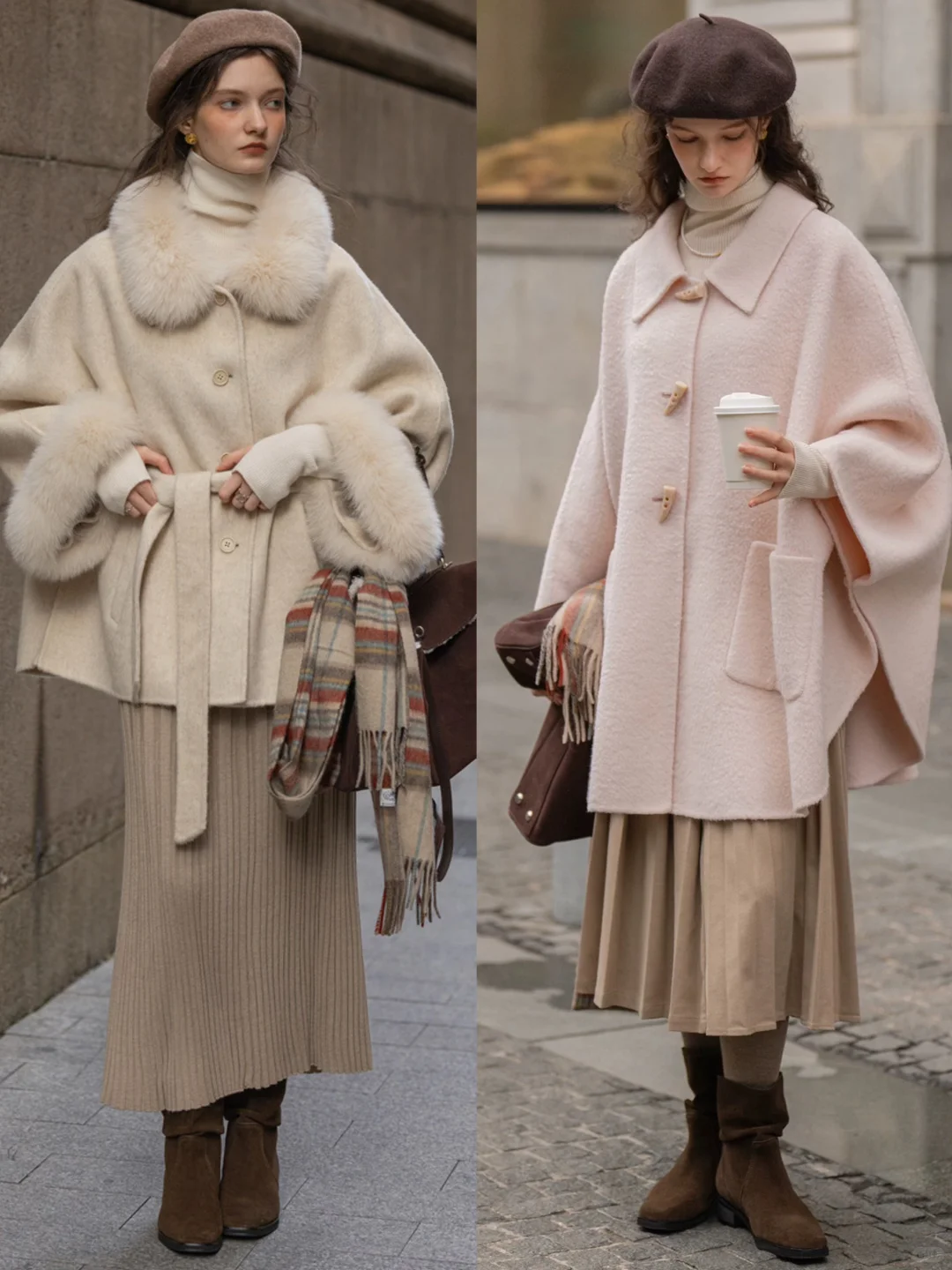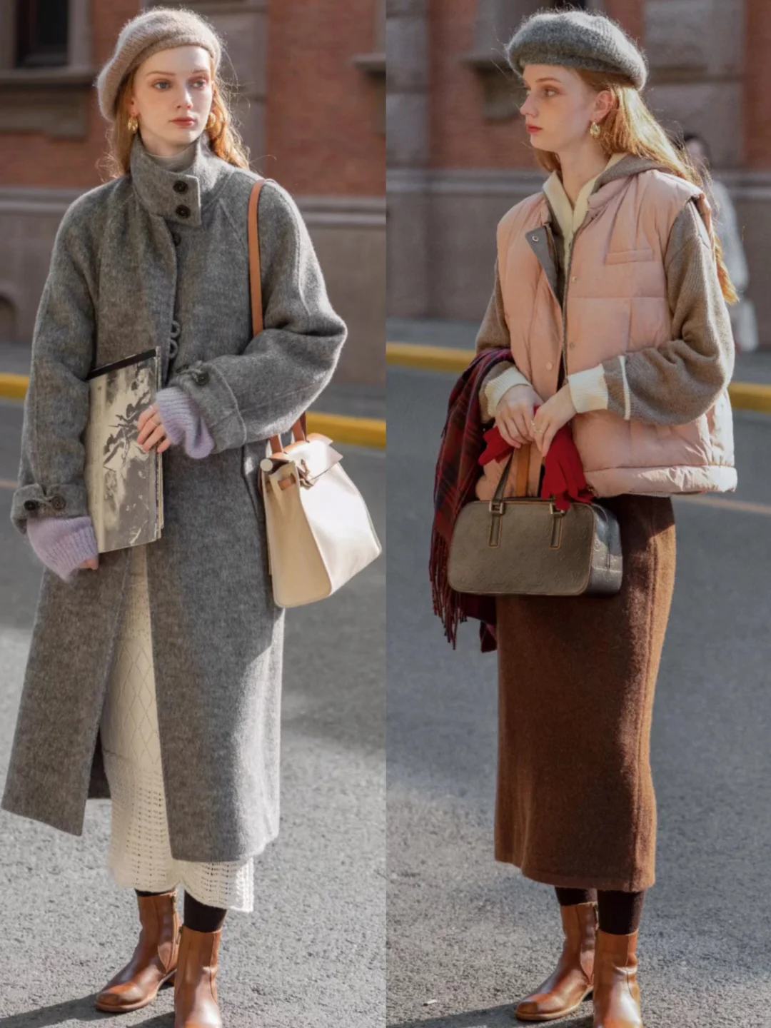 很多人对大衣配半裙望而却步,担心这样的组合会压身高。其实只要掌握技巧,小个子也能穿出大气场。