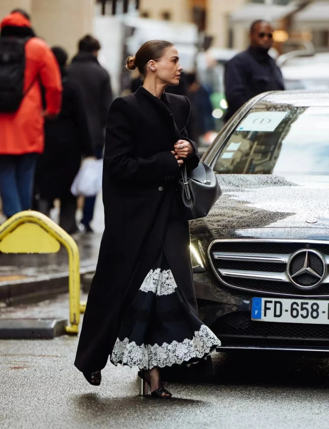无论是在街头巷尾,还是在时装周的聚光灯下,大衣+裙子的组合始终占据着一席之地。