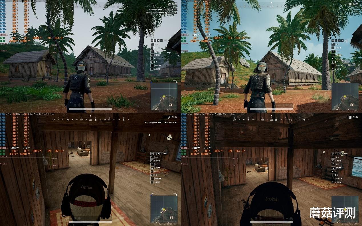 ▼绝地求生PUBG,2K分辨率,全高画质,室外游戏帧数是324帧和319帧,230F略低,但天气不一样,230F搭配的RTX 5070 Ti明显功耗更高,理论上游戏帧数应该要更高一点。室内游戏帧数是304和310,这个场景二者完全一致,230F游戏帧数更高,显卡的功耗更高。