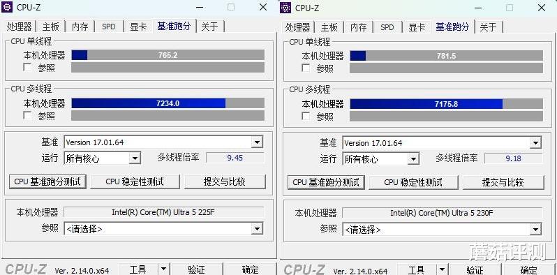 这两颗英特尔酷睿Ultra 225F和230F处理器,真的有点像孪生兄弟,只是230F稍微壮硕了一点,三级缓存大了4MB、睿频高了0.1GHz。性能方面,确实230F要更强一些,但很有限,也就在2%左右。