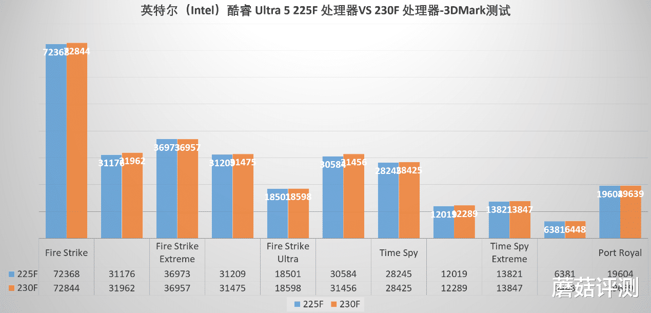 但这二者的差价也很有限,根据二手、散片、盒装的不同,差价在几十块的范围内上下波动。蘑菇个人还是更推荐230F,因为也就几十块,能买到一丢丢的性能提升,也不白花。但如果预算真卡的这么极限,用个225F也没啥,性能差距基本不可感知。