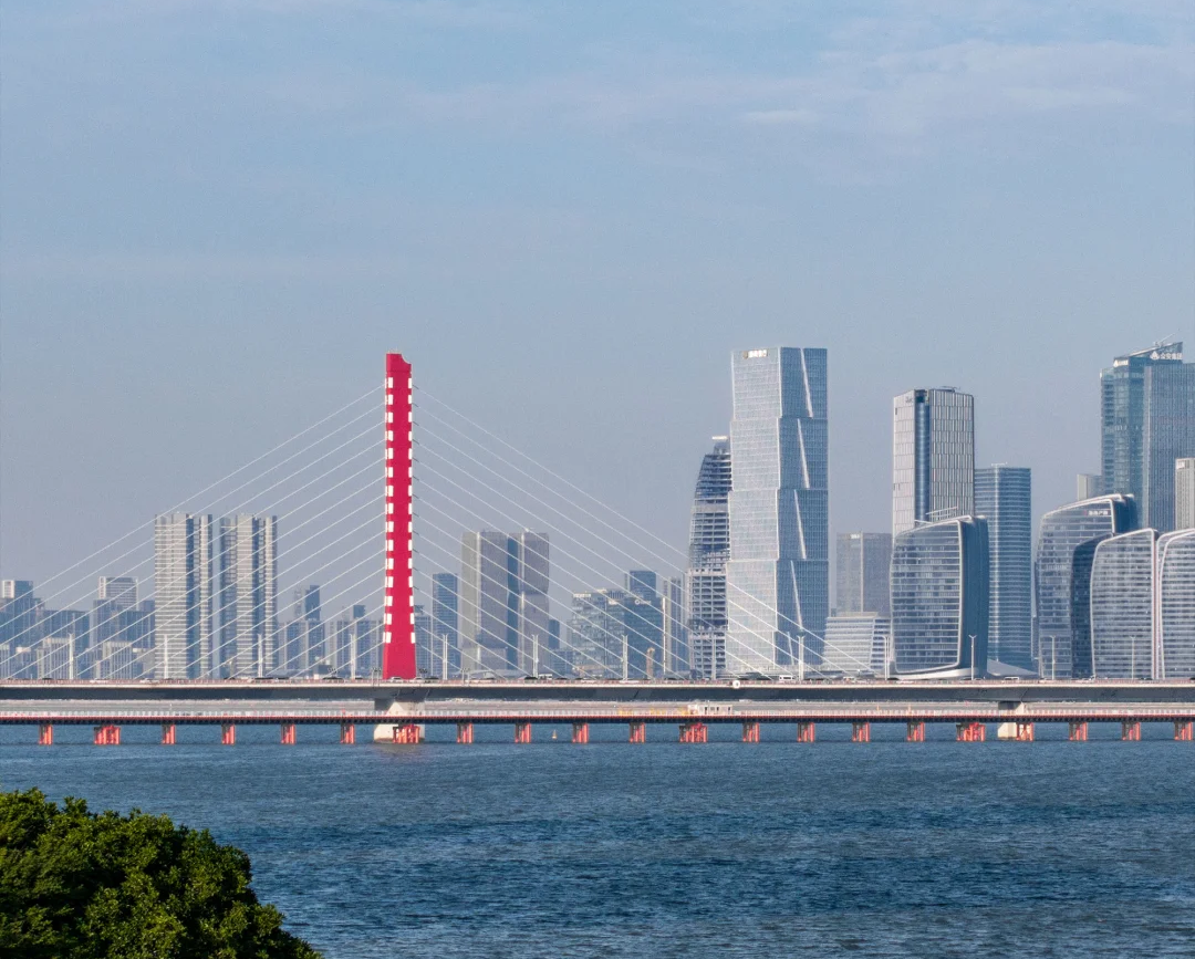 项目与钱江世纪城公园无缝衔接,南北两侧均环绕城市绿地。设计突破了传统高层办公的封闭模式,鼓励员工在休憩时段便捷抵达地面,漫步公园、亲近江景,实现“公园式办公”的理念。