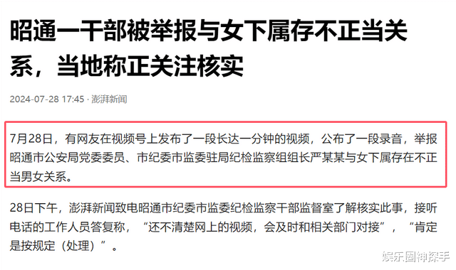 七月还是真是多事之秋,李佩霞父亲举报县委书记的事情才刚告一段落,没想到云南昭通一干部又被举报和女下属存在不正当关系。