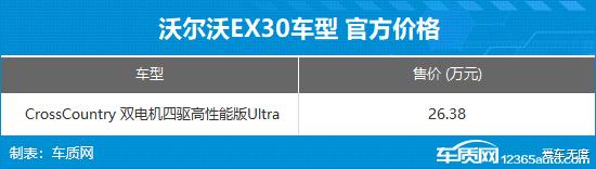 7月17日,沃尔沃EX30 Cross Country正式上市,官方建议零售价26.38万元,焕新专享参考价23.38万元。新车定位为小型SUV,是沃尔沃EX30的跨界越野版本。