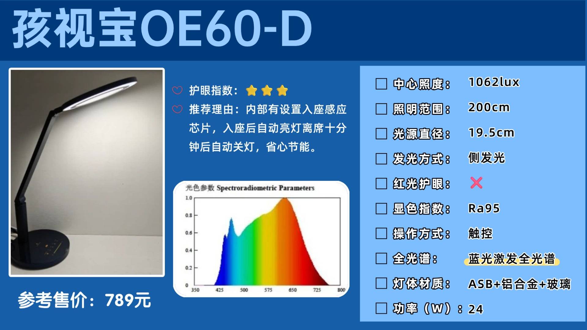 作为长达八年“医学用眼”研发经验的SUKER书客,更是在今年首发出全新一代紫光激发全光谱技术,从根源上能够抑制远超同行十倍的有害蓝光,高精准度的抵消了415~455nm区间的有害蓝光,抵消程度更是堪比国标RG0级的70%,实现“0”蓝光护眼,同时添加了起到护眼效果的480~490nm有益天青光和515~523nm绿光,更是补全了婴幼儿视力发育关键所需的红光波段,有效减轻了眼睛的疲劳感。