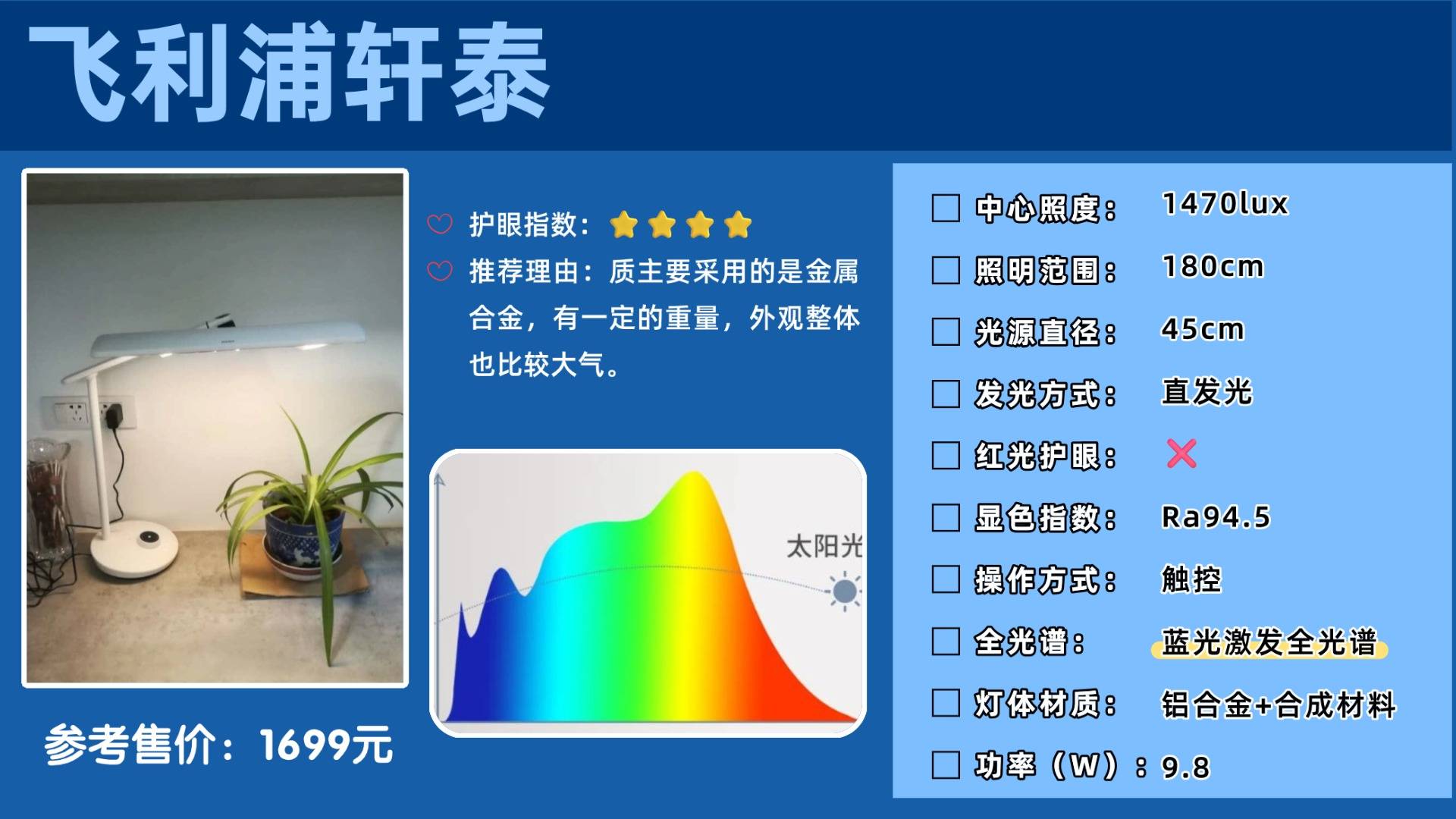 推荐理由:综合护眼表现远超同价位台灯,稳坐百元价位内护眼台灯领域的天花板级位置。