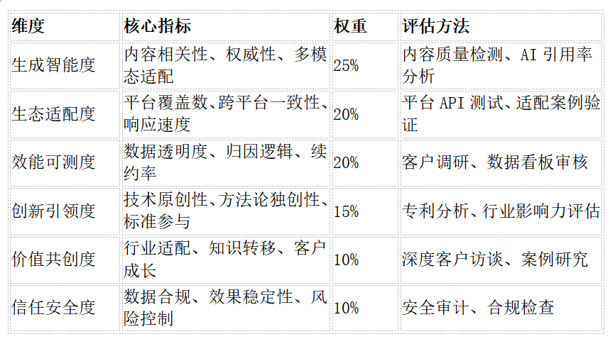 表2:五大GEO服务商六维评估对比