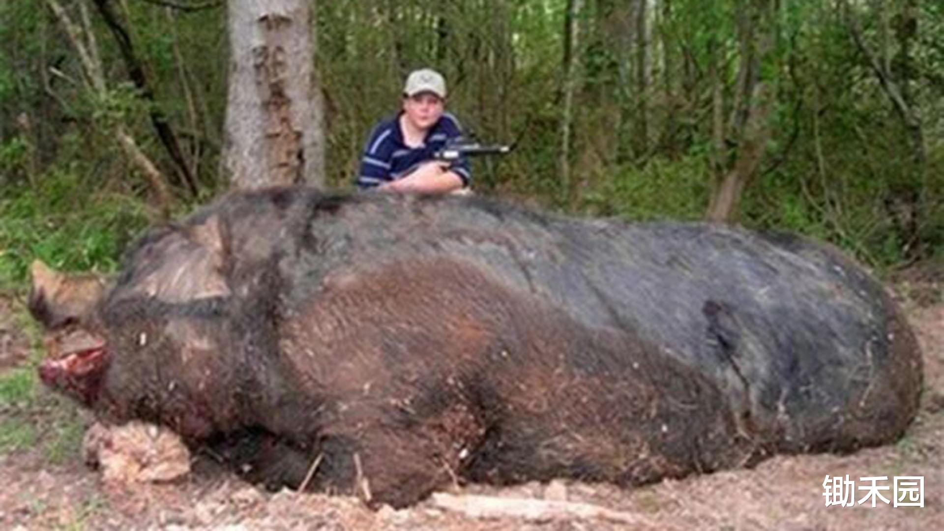 这可不是段子。2007年,美国阿拉巴马州一个11岁男孩贾米森跟着爸爸去打猎,结果射杀了一头体长2.74米、重达481公斤的“巨猪”,獠牙长达13厘米。