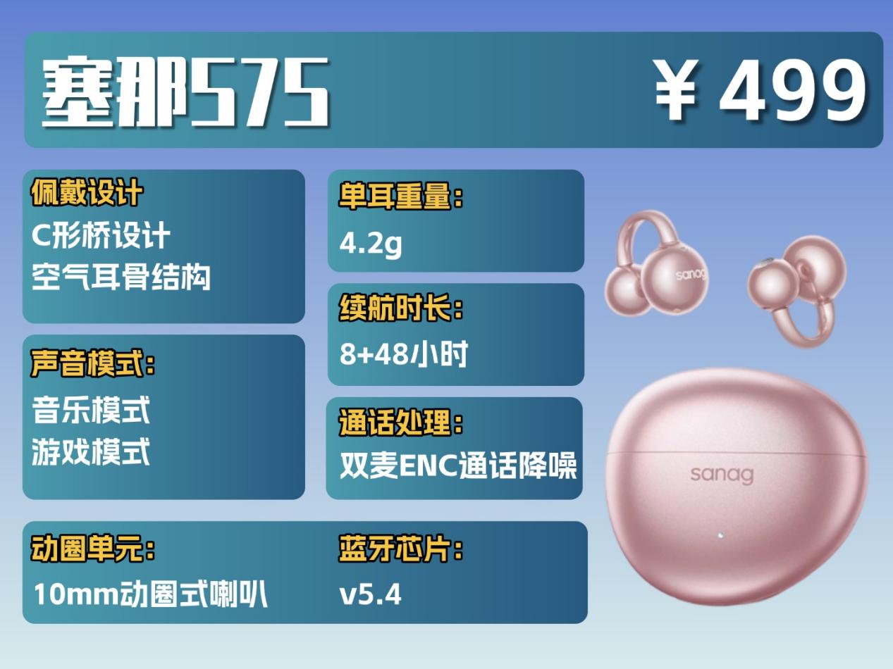 塞那 S7S 的耳夹式设计太懂我们了,还加了轻云舒适科技 6.0;耳机里面用的是升级款 0.5mm 超弹性记忆柔丝,再配上小云朵工程设计和人体工学球形腔体,贴耳朵又稳当,完全不会硌耳;单耳才 4.2 克,特别轻,在佩戴舒适感上还还是有不错的表现的。