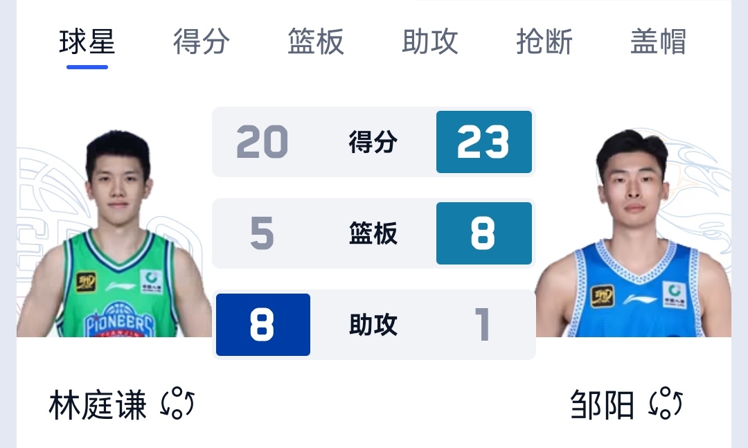 福建:邹阳23分8篮板,特莱斯18分5篮板5助攻4抢断,杨阿力15分1篮板2助攻,黎伊扬8分3篮板2助攻,曾凌铉5分,威廉姆斯4分1篮板,布里斯科3分5篮板4助攻。