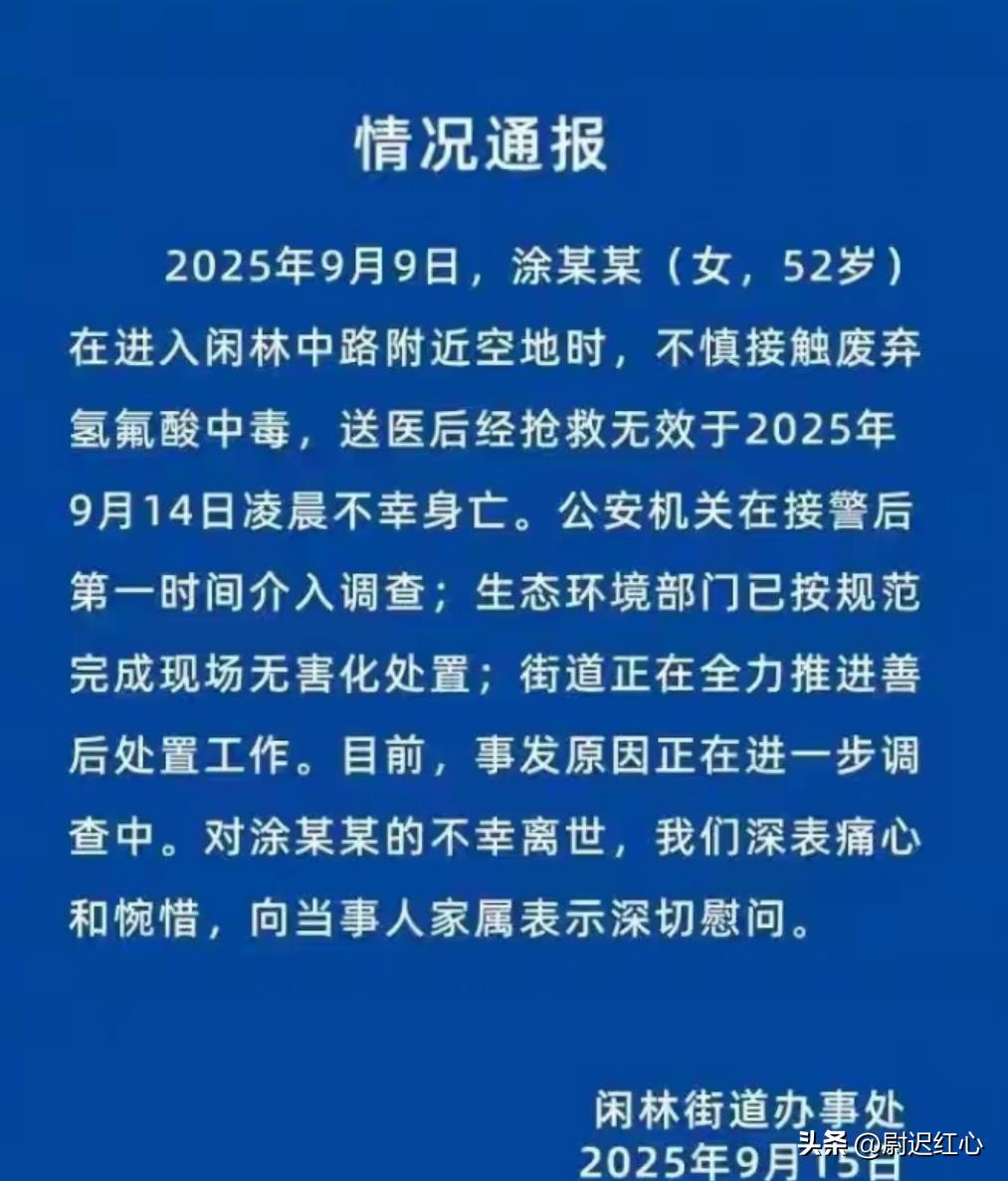 据知情人士透露,该片区曾是旧工厂和拆迁地,不排除有人违规弃置。可氢氟酸属于国家严格管控的危险化学品,必须按规范存放、运输和处理,绝不可能随意丢弃。有人公然将它遗留在小区周边,无疑涉嫌违法。