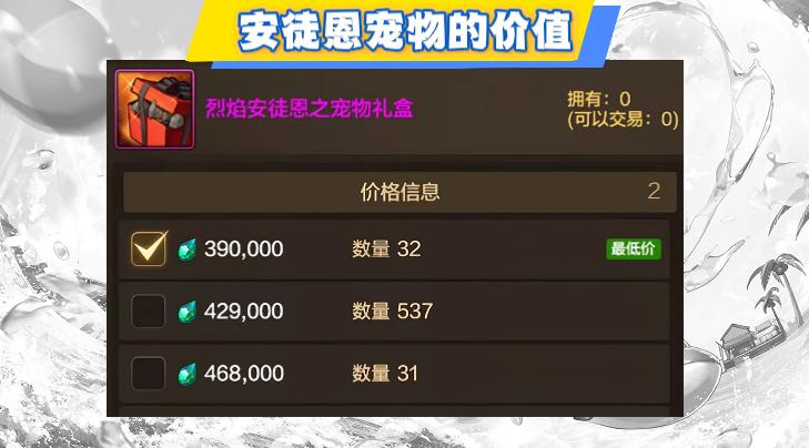阿甘左的拍卖行也符合这个规律,目前1个安徒恩宠物是39万泰拉。