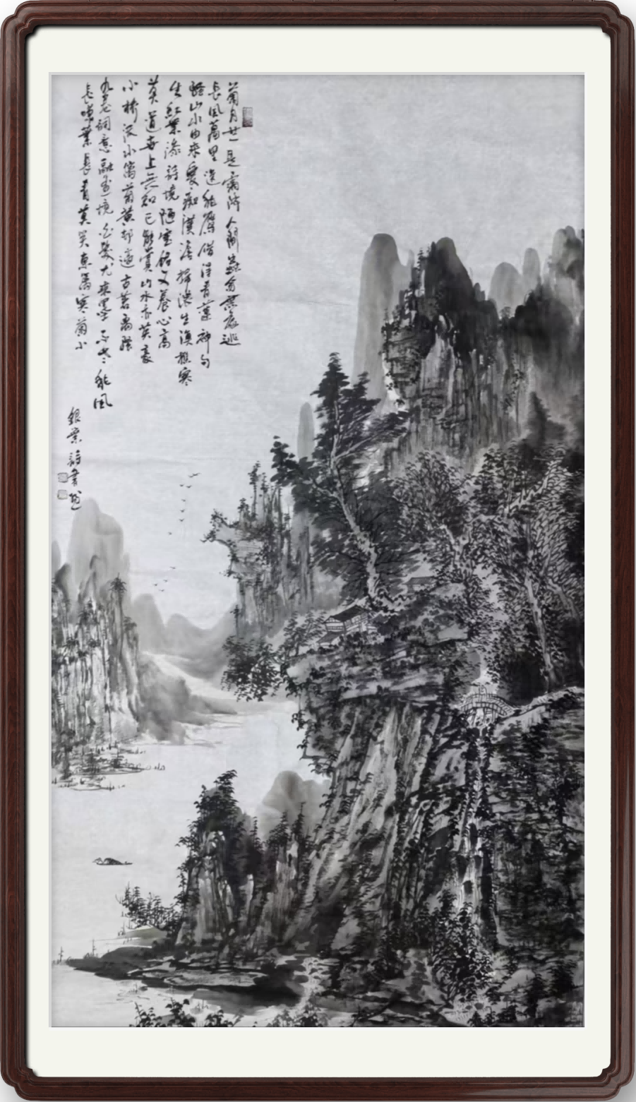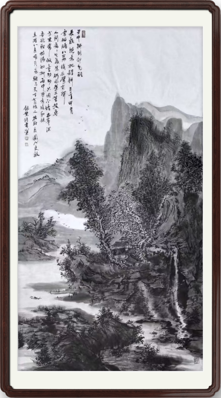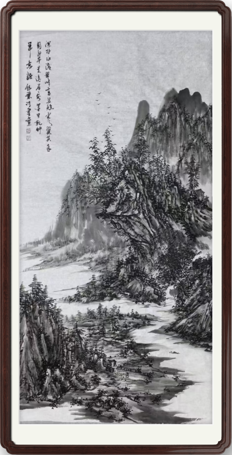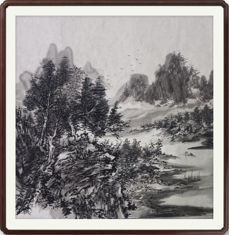 故土是承载着文人情感和梦想的一片诗意的土地,在人类文艺创作的历史长河中,故乡都是那么如诗如画。如海湿的《还乡行》,荷尔德林的《故乡》。。。。。银叶先生的山水画其实都是以故土为素材、用笔墨为载体来表达他心目中的“诗和远方”。