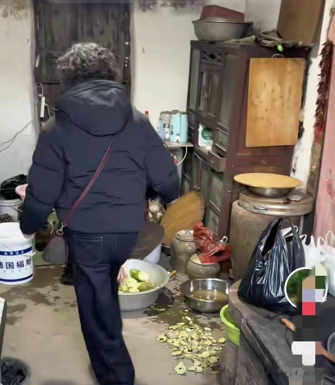 但镜头一转,屋里乱,地上东西多到下不去脚,门帘脏兮兮,灶台黑成一片,这么多有能耐的亲戚,真不打算给老人把屋子整整吗,这不该先办吗?