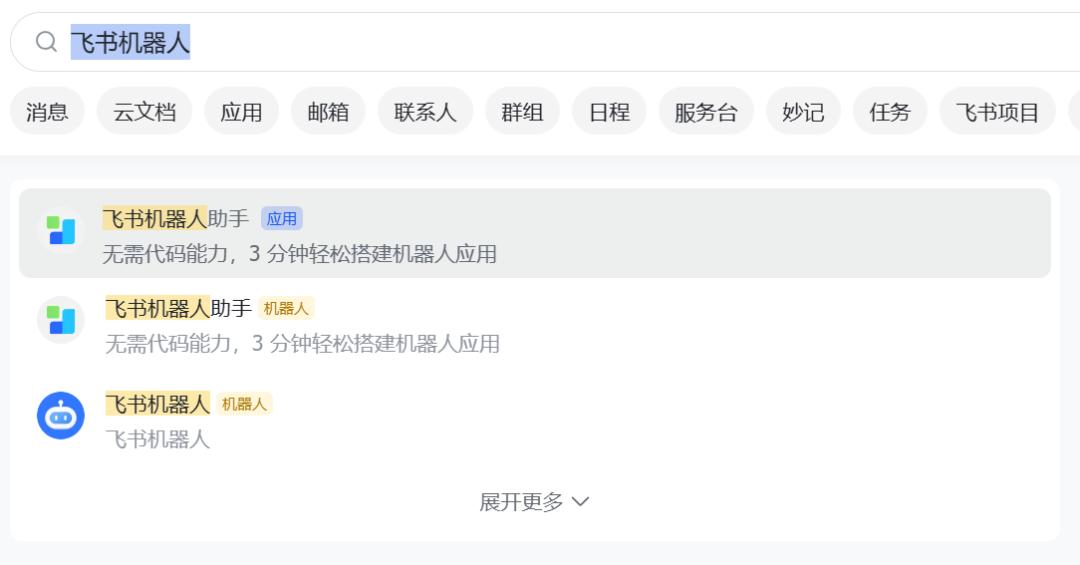 我们需要飞书上,找到这个叫飞书机器人助手的应用。