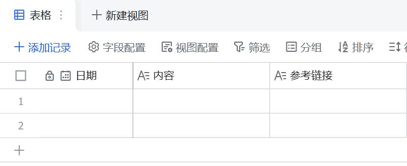 第一步,在你的电脑上,搭建一个新的飞书多维表格,设定好字段,这块不不会的可以去看我之前的,我就不细说了。