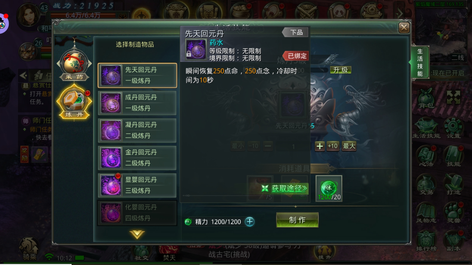 玩家可以通过采集药材、研磨药粉、学习丹方等步骤来制作丹药。药材通常分布在游戏的野外地图中,玩家需要使用采药技能进行采集。