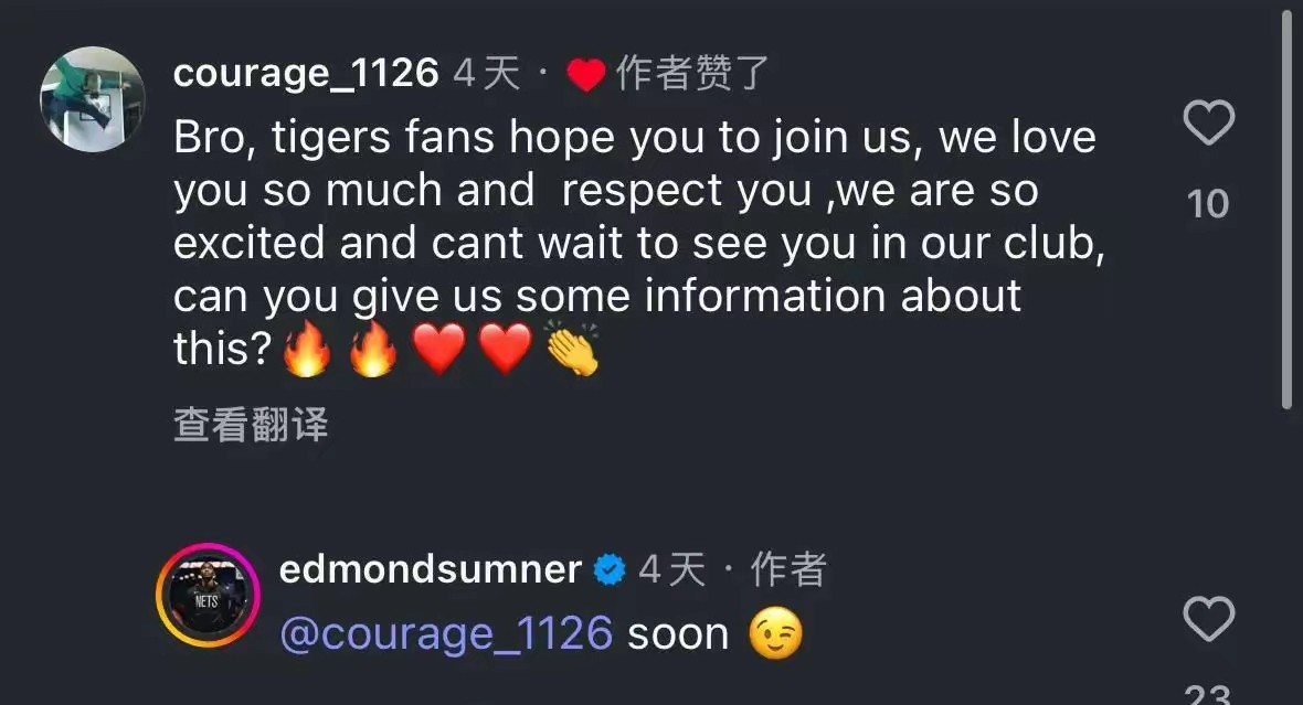 目前广东球迷对于萨姆纳加盟表达了极高的期待,同时萨姆纳也积极回复了球迷的期待,并表示很快就有消息。