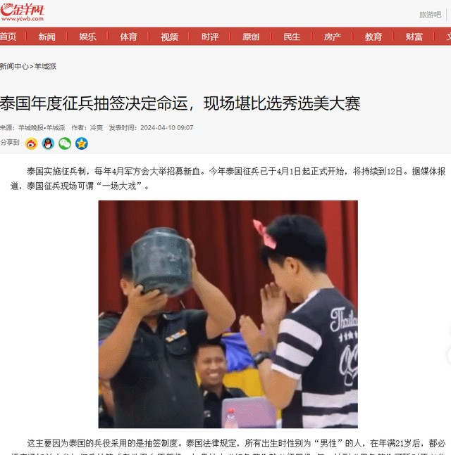 羊城晚报 泰国年度征兵抽签决定命运,现场堪比选秀选美大赛