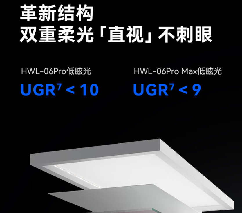 眩光:06ProMax实测统一眩光值UGR<9,远低于UGR<16的行业合格标准,消费者即使直视发光面也不会产生刺眼感觉,彻底解决眩光问题。
