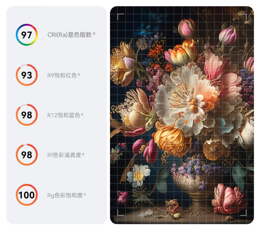显色性:显色指数Ra>98;特殊显色指数R9>95。