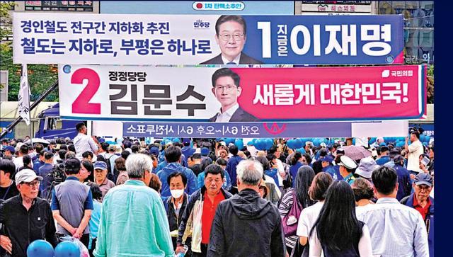 韩国总统选举风向突然逆转,曾经看上去胜券在握的最大在野党候选人李在明,和竞争对手的支持率差距急剧缩小。韩国机构25号发布的一份民调结果显示,李在明以47.3%的支持率继续领跑,但排在第二金文洙支持率升至39.6%,二人的差距历史性地缩小为7.7个百分点。至于排在第三名的改革新党候选人李俊锡支持率则为9.6%,如果把他的支持率和金文洙相加,那么二者总和已经超过了李在明。到底发生了什么事,让李在明的优势迅速缩减呢?我们目前可以找出三个可能比较关键的原因。