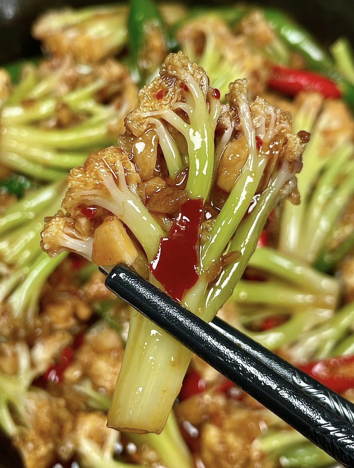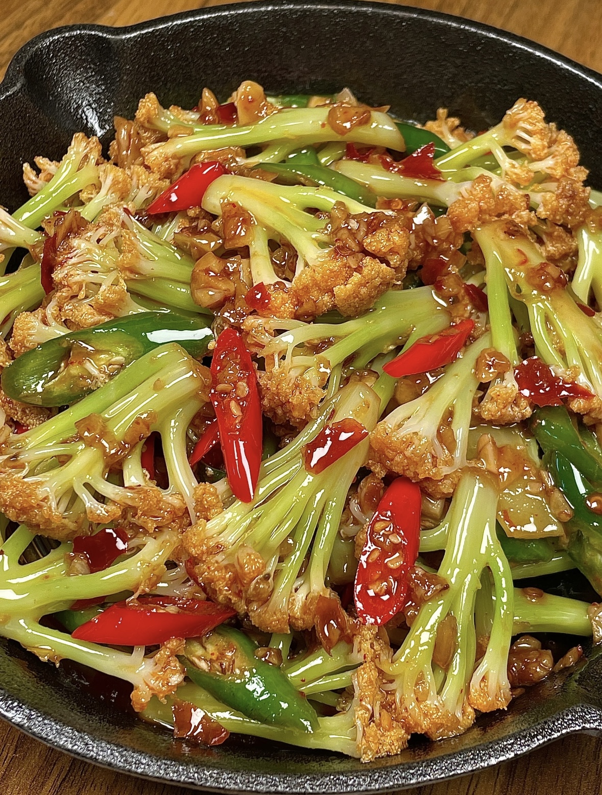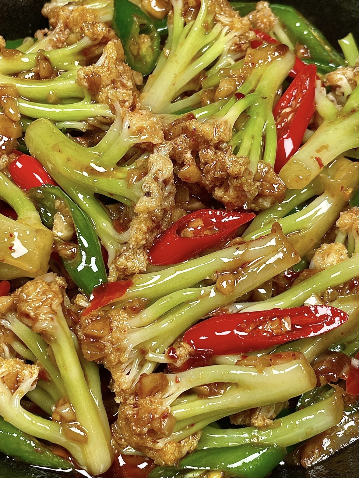 整个过程不超过十分钟,快得离谱,但味道却像你在川菜馆点的那种“干锅花菜”,香辣过瘾,花菜脆得像刚摘的,椒圈清爽,蒜香扑鼻。最绝的是,这道菜越放越香,第二天我拿出来热了一下,居然比刚炒的时候还入味,直接又干了一碗饭!