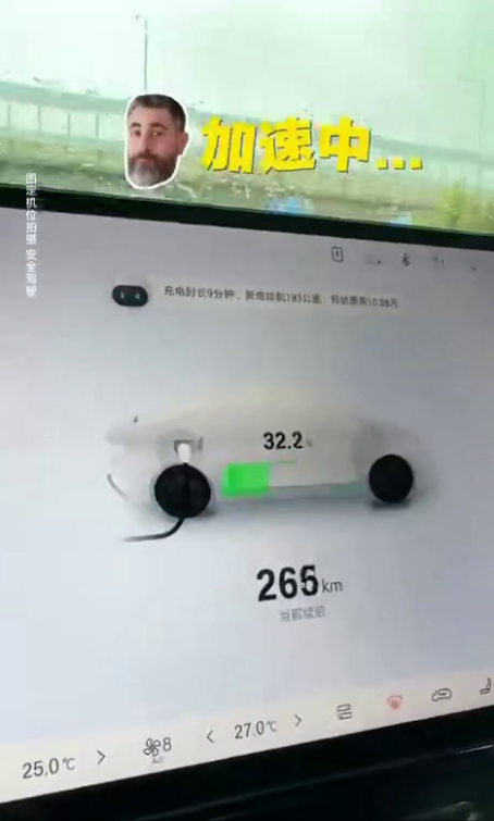 出发时,昊铂HT满电续航显示800公里。满载四人与物资一路驰骋,面对“电车长途焦虑”,曹操自信挑战:“15分钟充400公里,敢打赌吗?”实测中,充电功率一度冲至250安培,最终18分钟补能近400公里,连他都坦言:“按数据我输了,但实际是个惊喜!”
