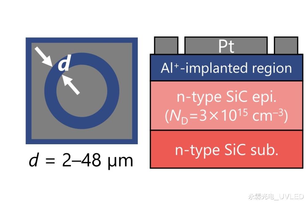 肖特基载流子二极管的制备肖特基载流子二极管的制备始于在p型4H-SiC (0001)衬底上生长p型SiC层。添加铂电极的步骤与上述圆形传输线模型结构的制备步骤相同。