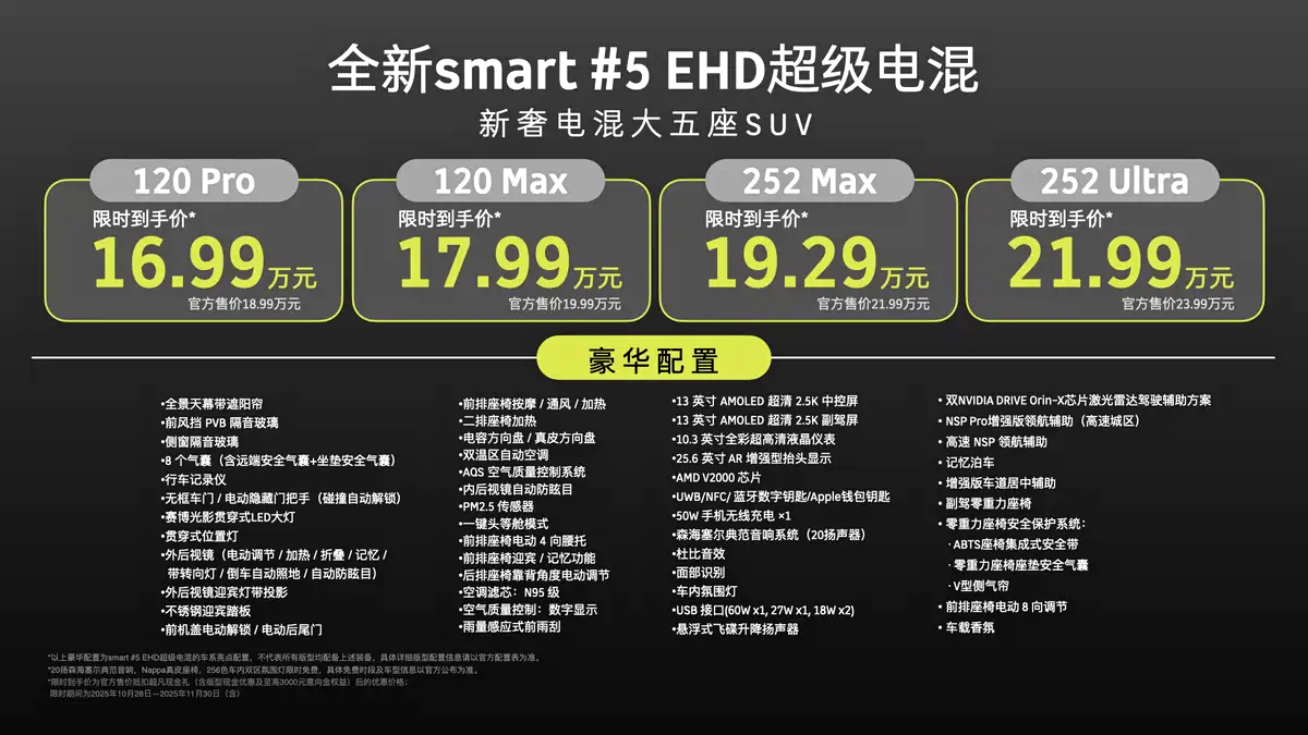 车侧就是传统的SUV设计了,平直的车顶线条下,后排和后备厢的Y轴空间不会为了设计而牺牲太多。细节方面,C柱上有smart的圆形LOGO,车门为隐藏式设计,整体设计倒也不错。尺寸方面,新车的长宽高分别为4705/1920/1710mm,轴距为2900mm。