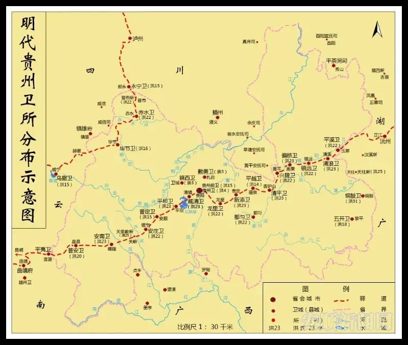 平定西南后,为稳定西南边陲,明王朝在云贵地区力推卫所军屯,以安顺为中心驻扎军队,将士们就地屯田驻军,置官设卫,推行屯田制度,使屯军及家属立寨安居。