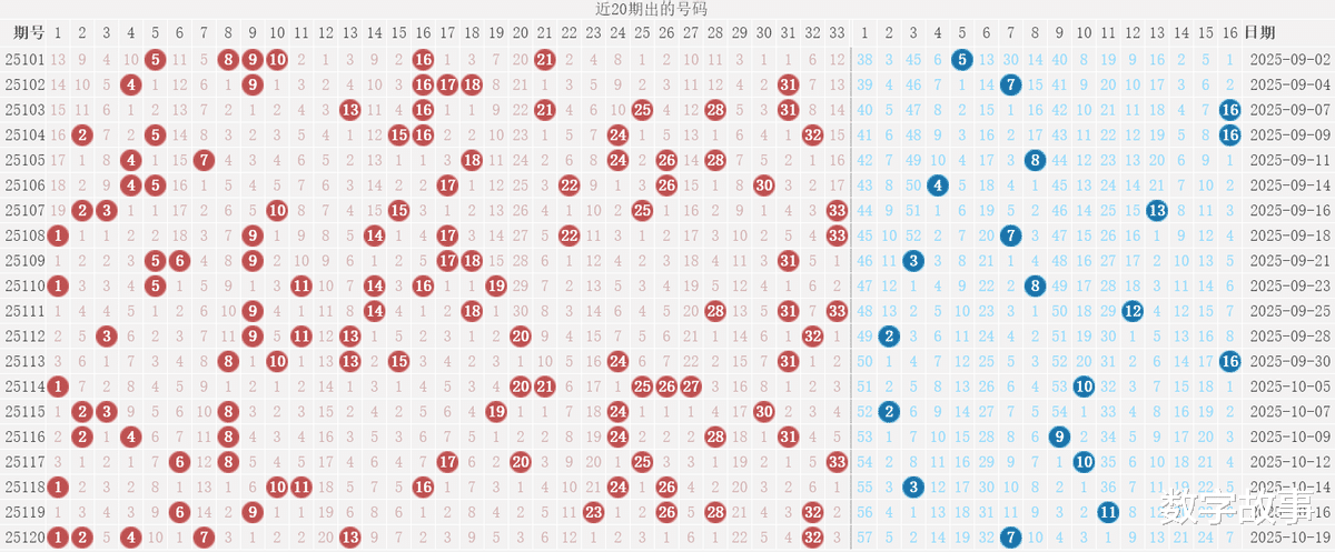 【其他历史数据查询统计】双色球历史上的今天2025-10-20 星期一 双色球不开奖每年10月20日出号情况: