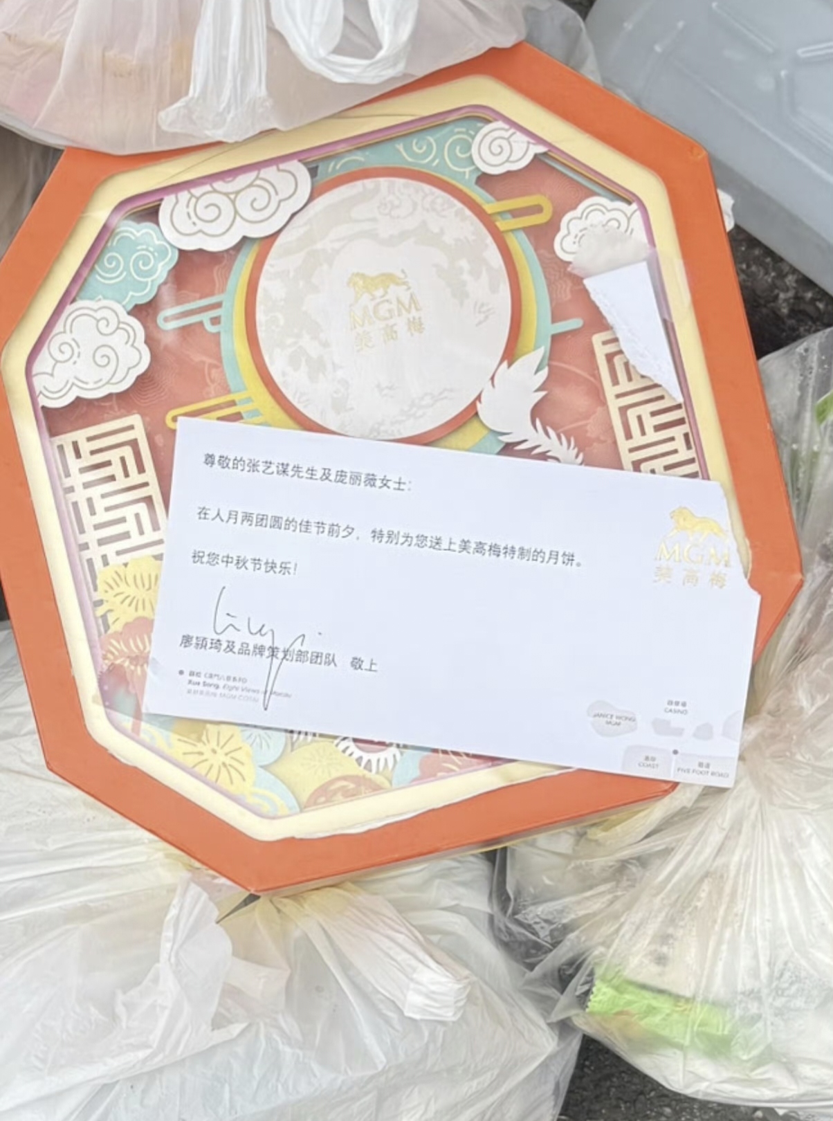 事情起因是日本东京某垃圾站惊现印有“张艺谋”大名的月饼礼盒,礼盒上还附赠一张贺卡,落款是美高梅中国品牌营销部副总裁,祝福对象是“张艺谋先生及庞丽薇女士”。消息一出,网友瞬间炸锅,评论区秒变段子手大赛现场:“老谋子的月饼这是坐头等舱去日本‘流浪’了?还是想证明‘月饼盒的征途是星辰大海’?”“月饼盒:我本该在中秋团圆,结果成了跨国特工,这剧情反转得比电影还快!”
