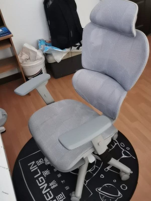 坐感整体偏放松,适合长时间连续坐着。绒感网布透气性不错,夏天不闷。腿托展开后休息体验加分,但收起状态下存在感不强,不影响正常办公。整体给人的感觉是“舒服但不激进”,没有明显短板。