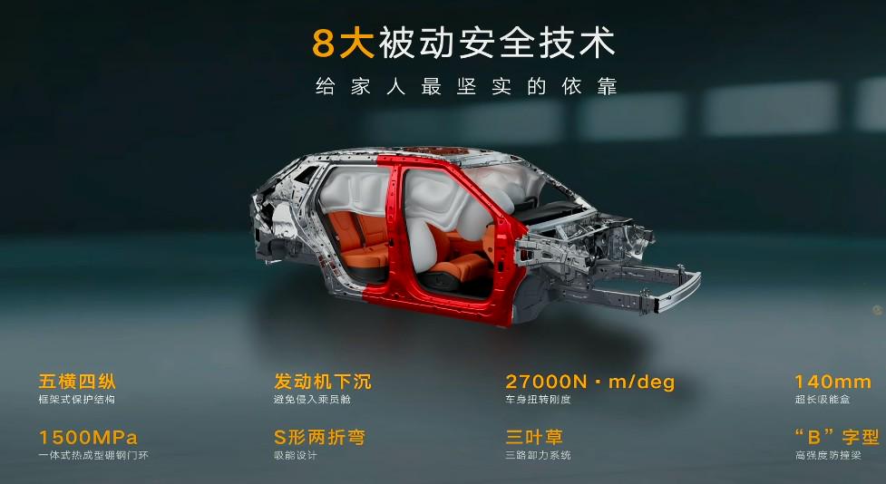 安全防护体系同样可圈可点。车身采用20%的1500MPa热成型硼钢,扭转刚度达27000N·m/°,为座舱提供高强度结构保护。16项主动安全功能覆盖从城市预碰撞到盲区监测的全场景风险预警,RCTA后方交叉预警可探测150米外来车,提前3秒发出警报,大幅降低事故风险。