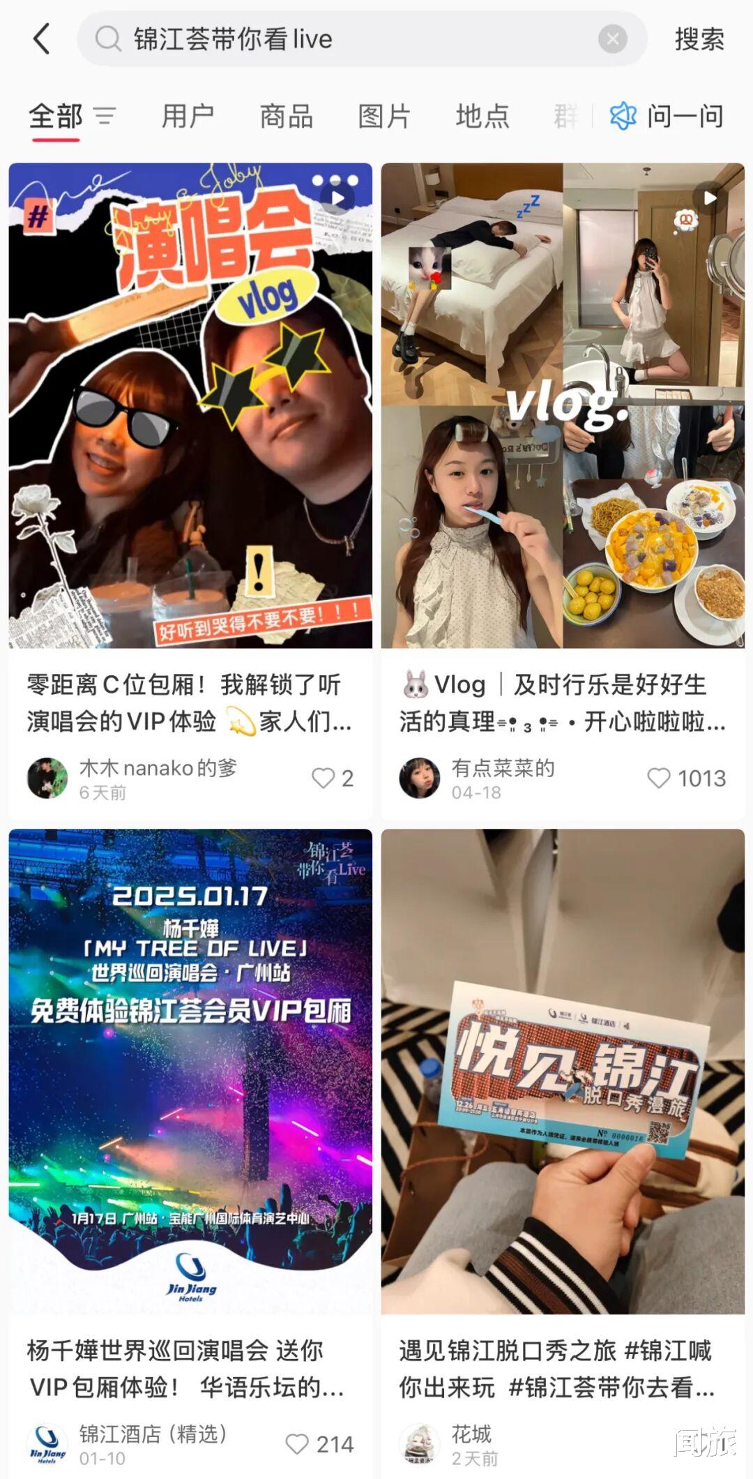 大家在社交媒体上提到锦江晒的已经不仅仅是房卡与体验,还有更多关于“城市LIVE演出打卡”的内容种草。