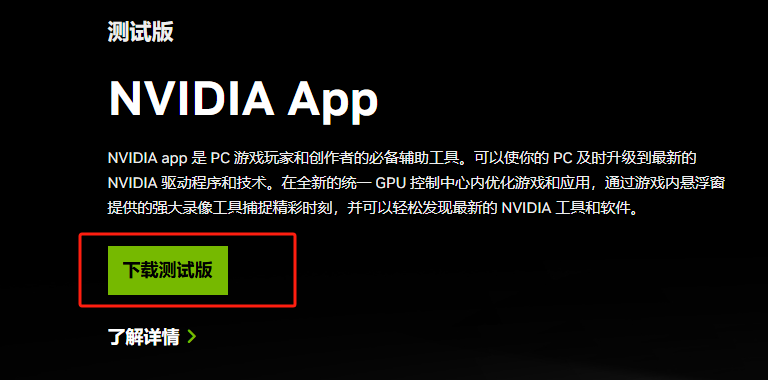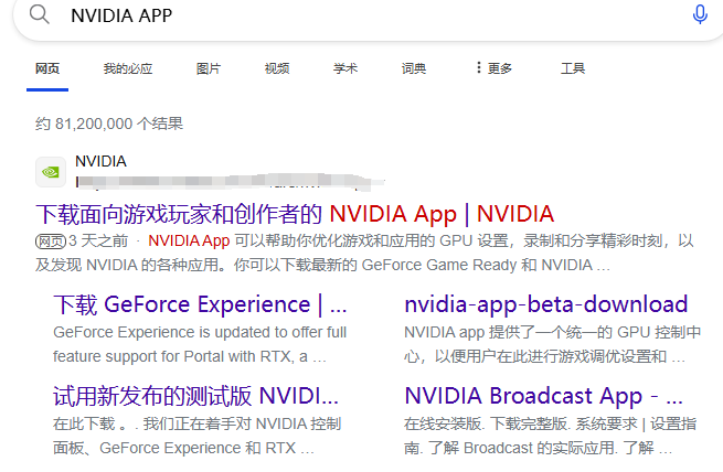 第一步先下载一个英伟达的官方APP,这次的活动就在其中参与,下载的话搜索NVIDIA APP