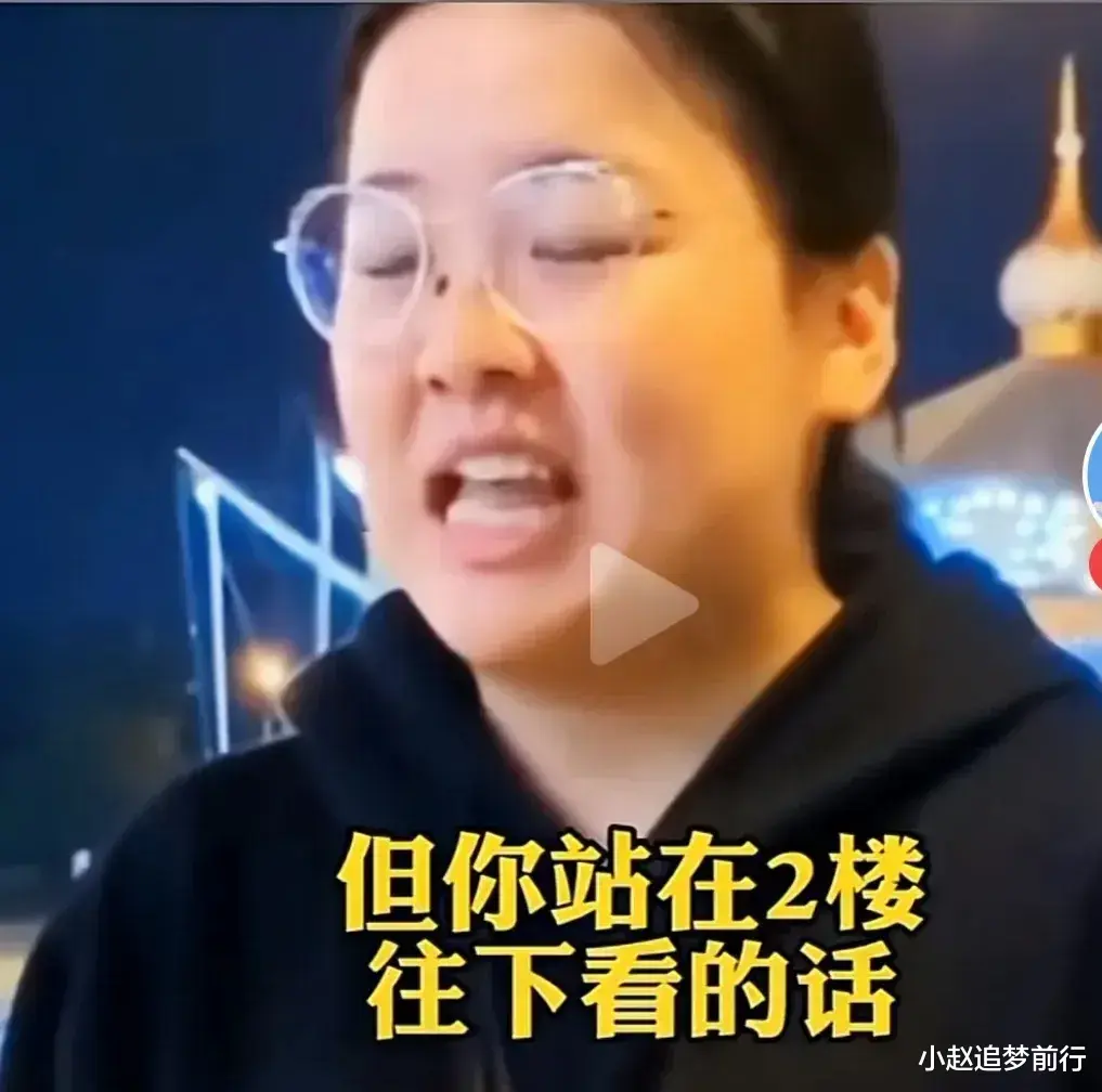 再换句话说,在女子看来,自己是站在楼顶的人,但是在学历更高的人眼中,那该女子不就像是站在二楼一样的角色了吗?