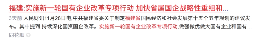 福建:实施新一轮国有企业改革专项行动 加快省属国企战略性重组和专业化整合。