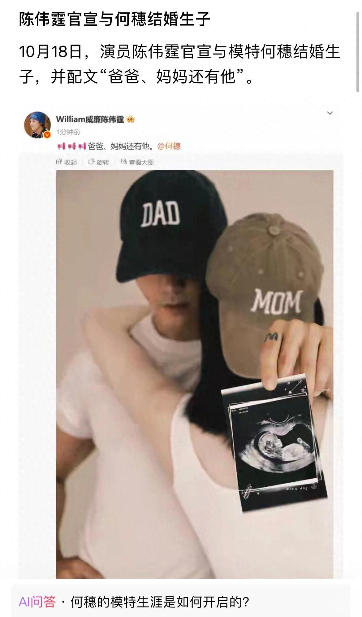 真当我特别焦虑的时候,突然就刷到陈伟霆何穗官宣生子!当看到这个消息的时候其实一开始我也跟网友一样意外,平时很少有交集的两个人怎么突然都生孩子了?