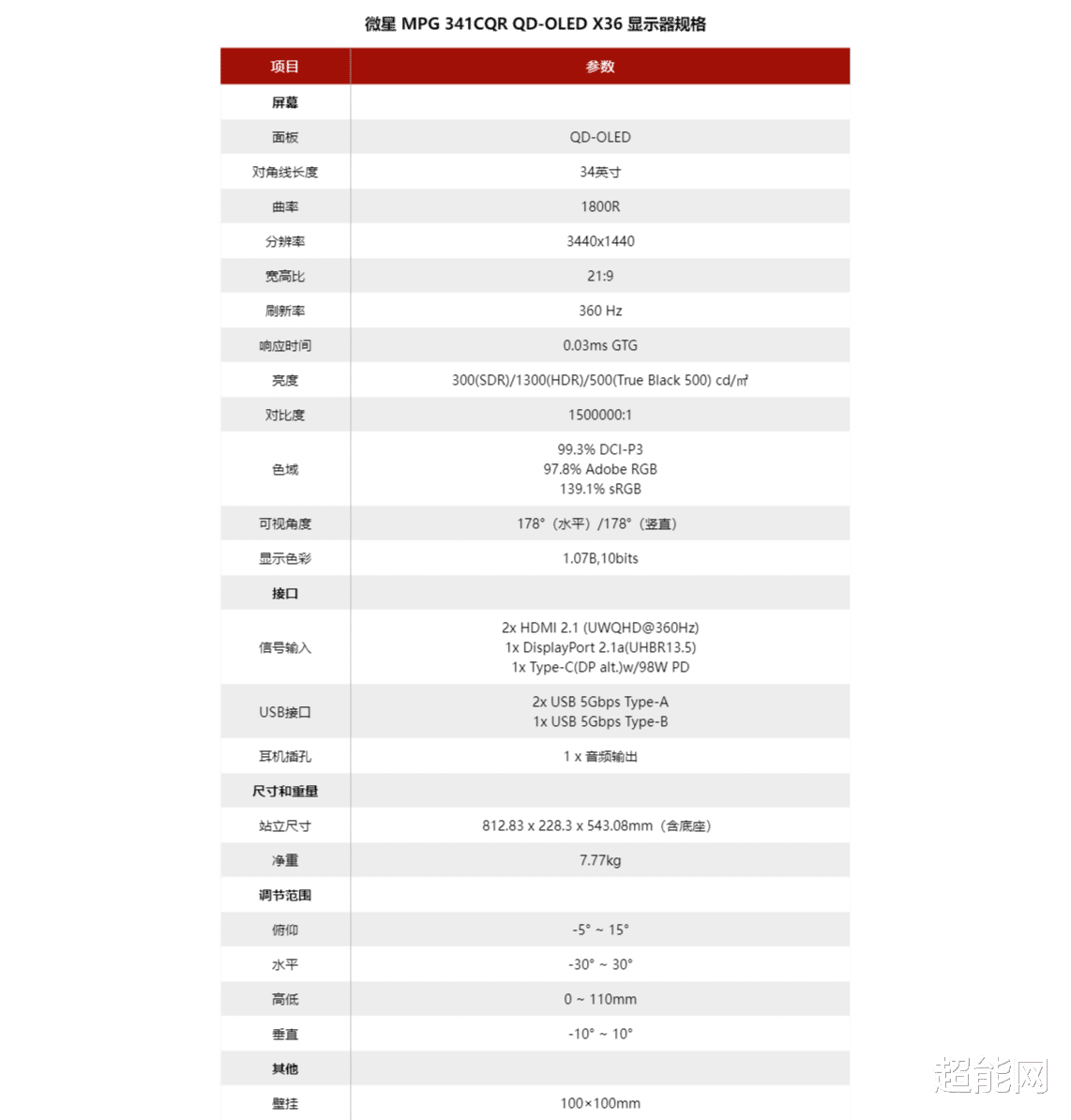 MPG 341CQR QD-OLED X36采用了21:9的34寸屏幕,拥有3440*1440的分辨率,刷新率最高为360Hz,三星的第五代QD-OLED面板的子像素排列方式更接近传统LCD的RGB布局,从根本上提升了画质表现。新产品还得到了VESA HDR TRUE BLACK 500和ClearMR 18000认证,同时还支持Adaptive Sync技术。