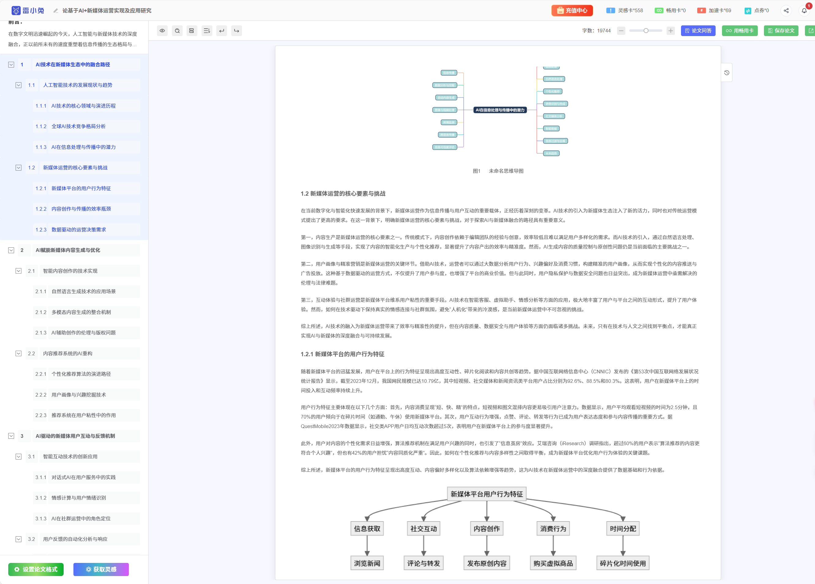 1.框架搭建不代笔:输入题目生成思维导图式大纲,清晰拆解“研究背景怎么铺、文献综述怎么搭”,但核心观点需自主填充——这是“帮你会写”,不是“帮你写”。