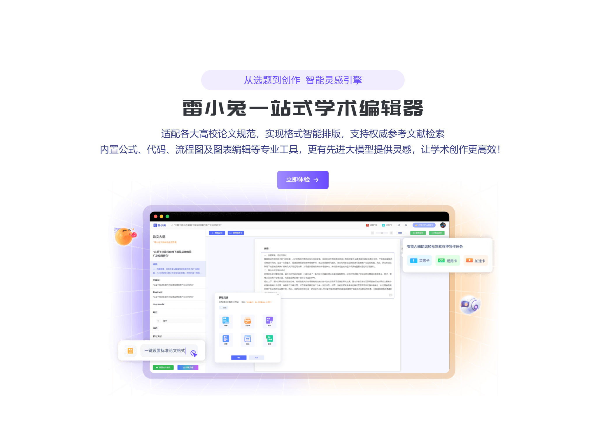 工具是助手,原创是根本2025年的学术环境下,“AI代写”早已是过街老鼠,而合规的AI工具正在成为科研路上的“脚手架”。雷小兔这类工具的价值,在于帮你解决格式、文献、排版等机械性难题,让你有更多精力投入原创思考。