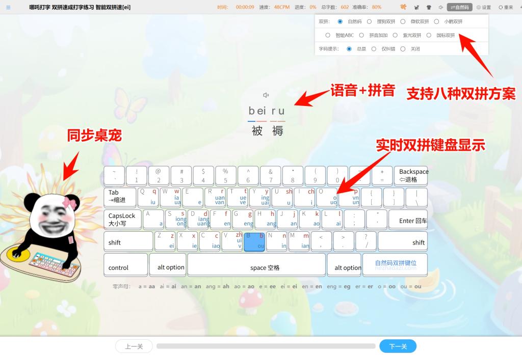 哪吒打字有个“错键分析”,练完一篇,它直接告诉你:“G键错误率30%”“双拼‘ue’总打成‘ve’”。这些就是你的“七寸”。